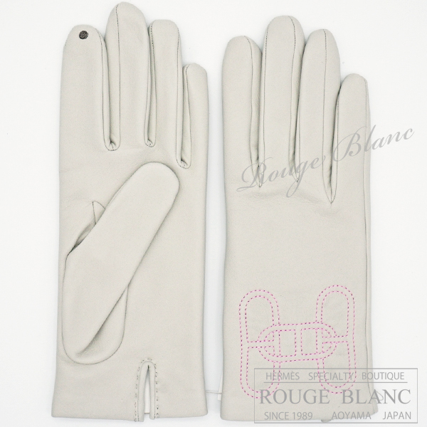 - 新品 エルメス 国内定価187,000円 手袋 グローブ シェーヌダンクル パールグレー×ピンク ラムスキン #6.5 (17cm) タグ付 HERMES