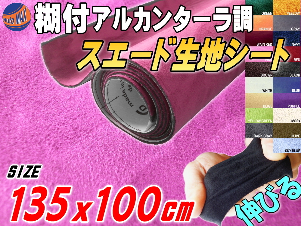 > スエード(大)ピンク 幅135×100cm伸びるアルカンターラ調スウェード生地スエードシート裏面糊付きカッティング可 シート内装ステッカー車 7