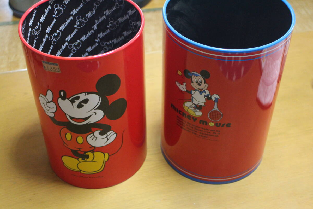 - 昭和レトロ ミッキーマウス スチールゴミ箱 2個セット 30㎝×20㎝、31㎝×21㎝ 未使用 株式会社ぶんぶん製