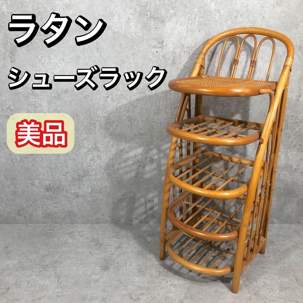 - 美品 天然素材 ラタン 籐家具 5段ラック 棚 収納 家具 籐 スリッパラック
