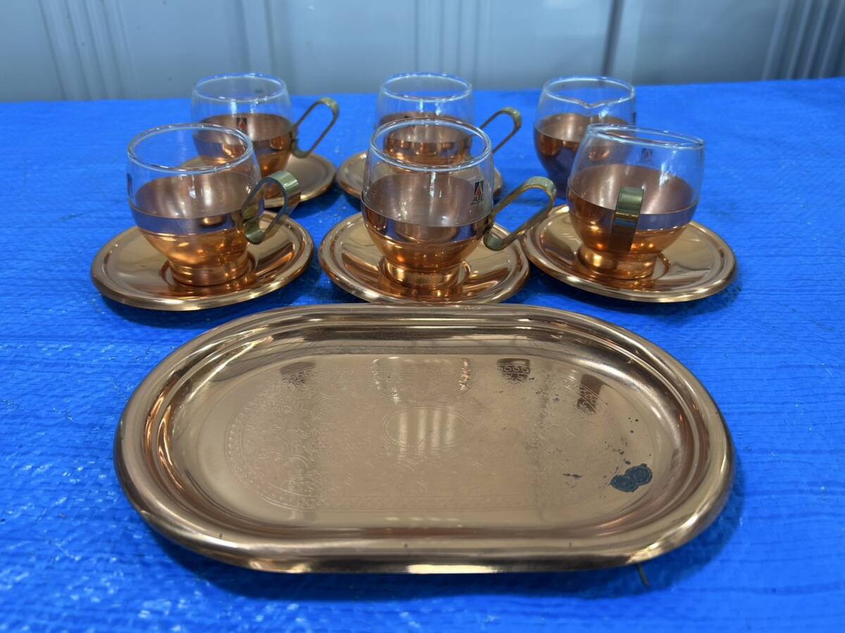 > 昭和レトロ純銅製ティーカップ&ソーサー 5客セット おしゃれ 気分 高級感 高揚感 喫茶店 キャンプなどにいかがでしょうか