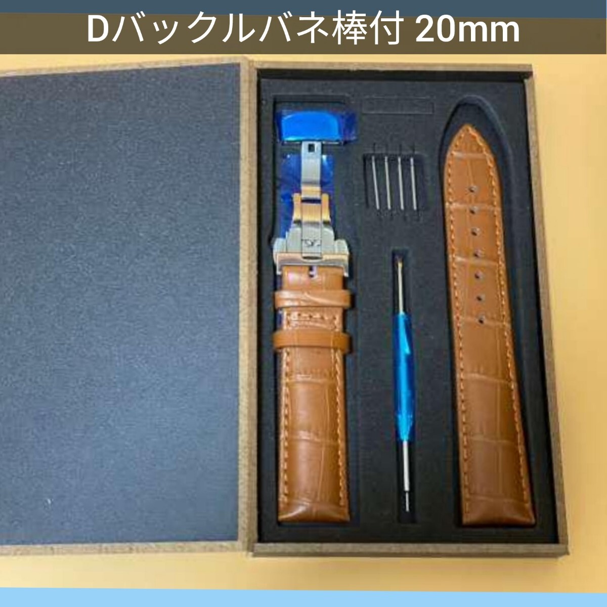 - 腕時計ベルト レザーベルト Dバックル バネ棒 外箱 20mm 腕時計バンド 交換用バンド 時計ベルト 革ベルト スペアベルト 予備ベルト