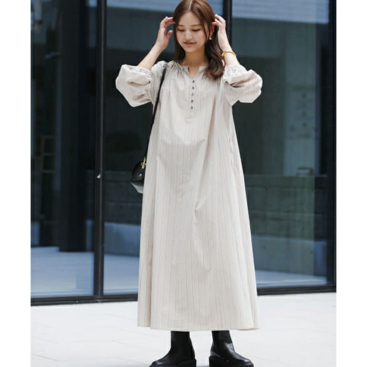 - アーバンリサーチ コットンストライプスキッパーワンピース ベージュ フリー