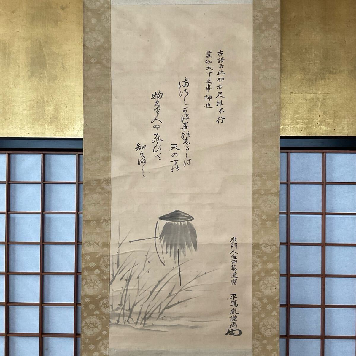 - 【真作】蔵出し【平田篤胤『久延昆古神画賛 案山子図』絹本 肉筆 江戸後期の国学者 神道家 思想家 医者 銕胤の鑑定書 秋田県出身 共箱】