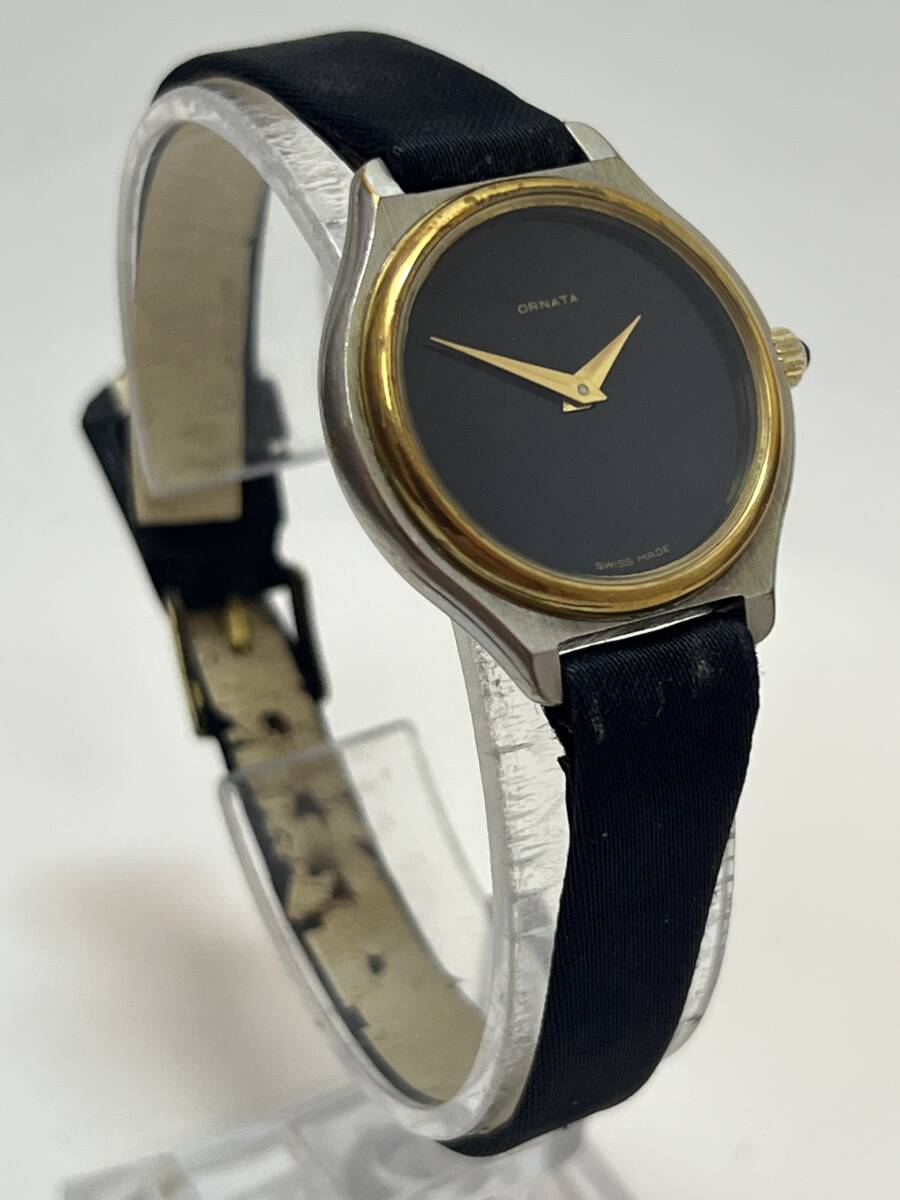 - ORNATA レディース 腕時計 手巻き 2針 ブラック文字盤 アンティーク