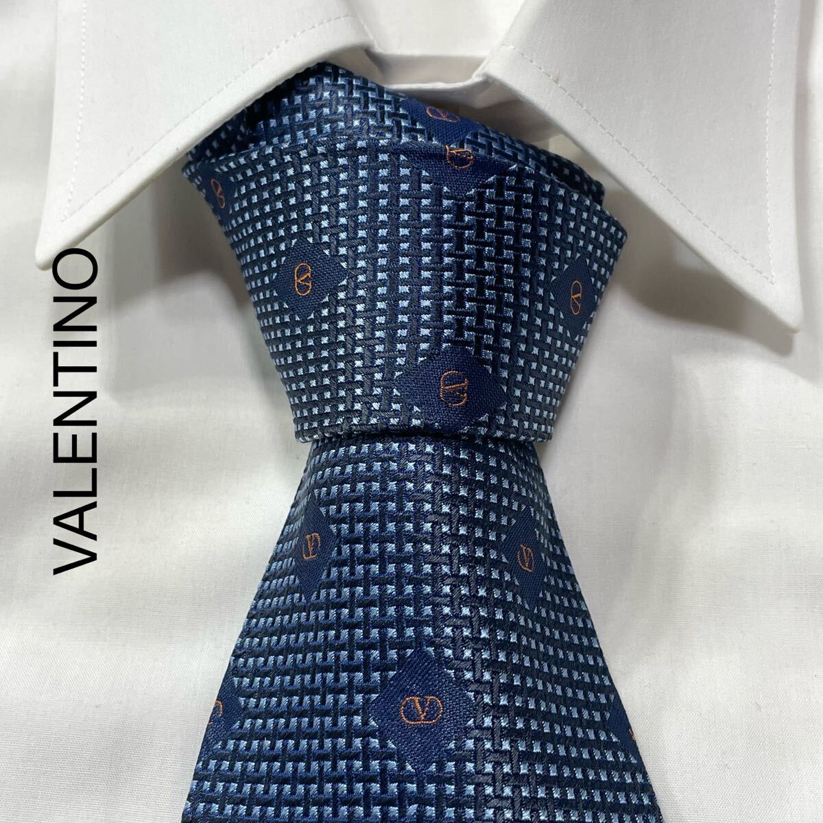 > VALENTINO ヴァレンティノ ロゴ ドット ジャガード シルク ネクタイ イタリア製 ネイビー ブルー TG2758