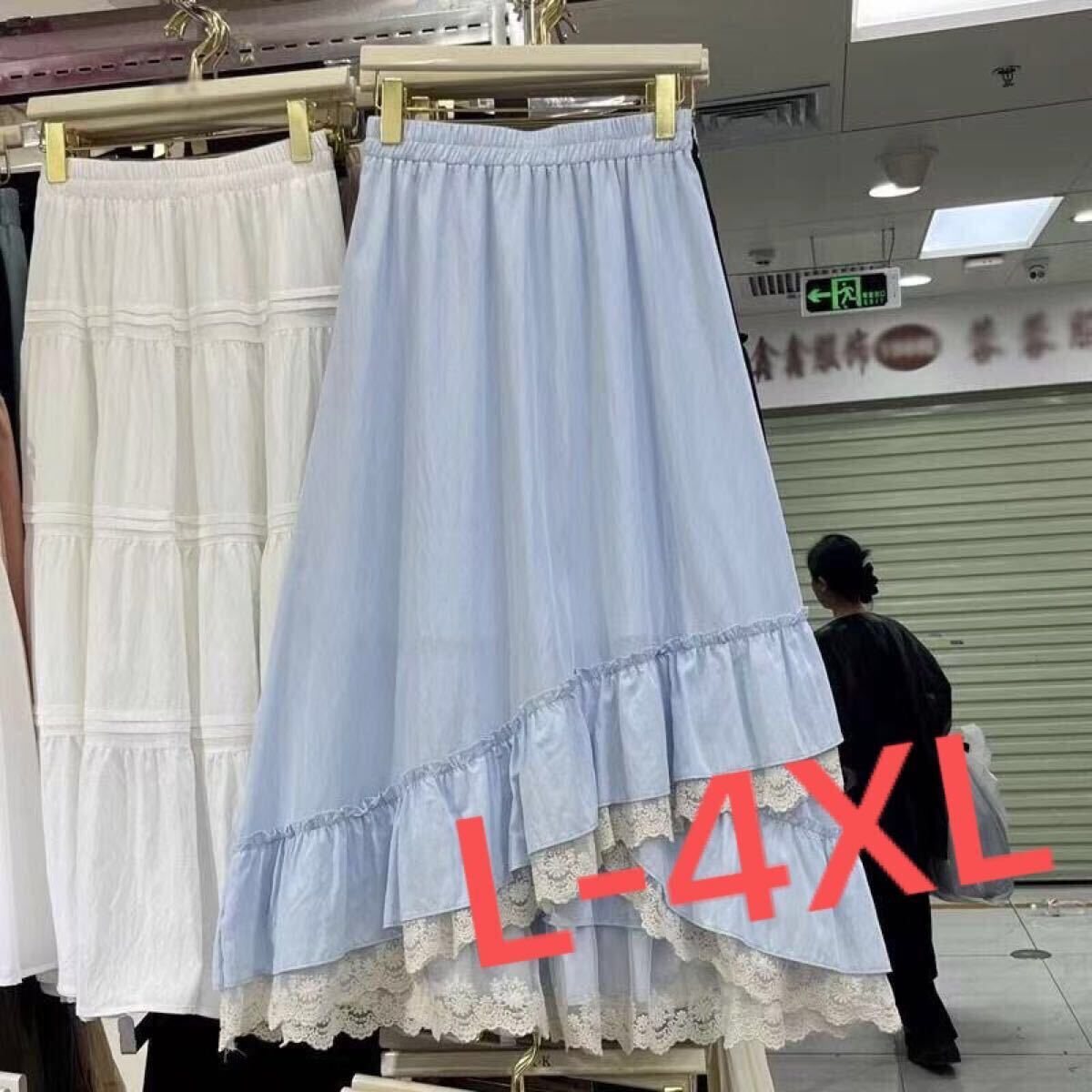 - フレアスカート レース フレア ビッグ レーススカート 大きめ レトロ モード 無地 ゆったり 春 夏 aラインスカート LKGA027(4色L-4XL)