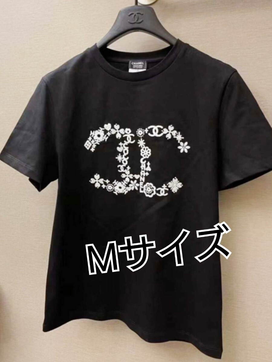 > 非売品 シャネル CHANEL スタッフ 従業員専用 ユニフォーム 衣装 ココマーク刺繍 夏 サマー ブラック Tシャツ M