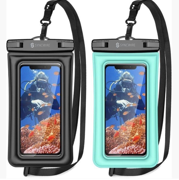 > 2枚セット Syncwire 防水ケース スマホ PX8認定 顔認証 完全密封 よいタッチ iPhone/Android対応 (ブラック+グレーン)0040-11