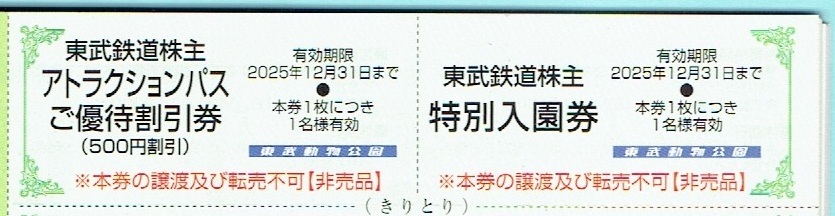 - 東武鉄道 株主優待券 東武動物公園 特別入園券+アトラクションパス割引券★複数有