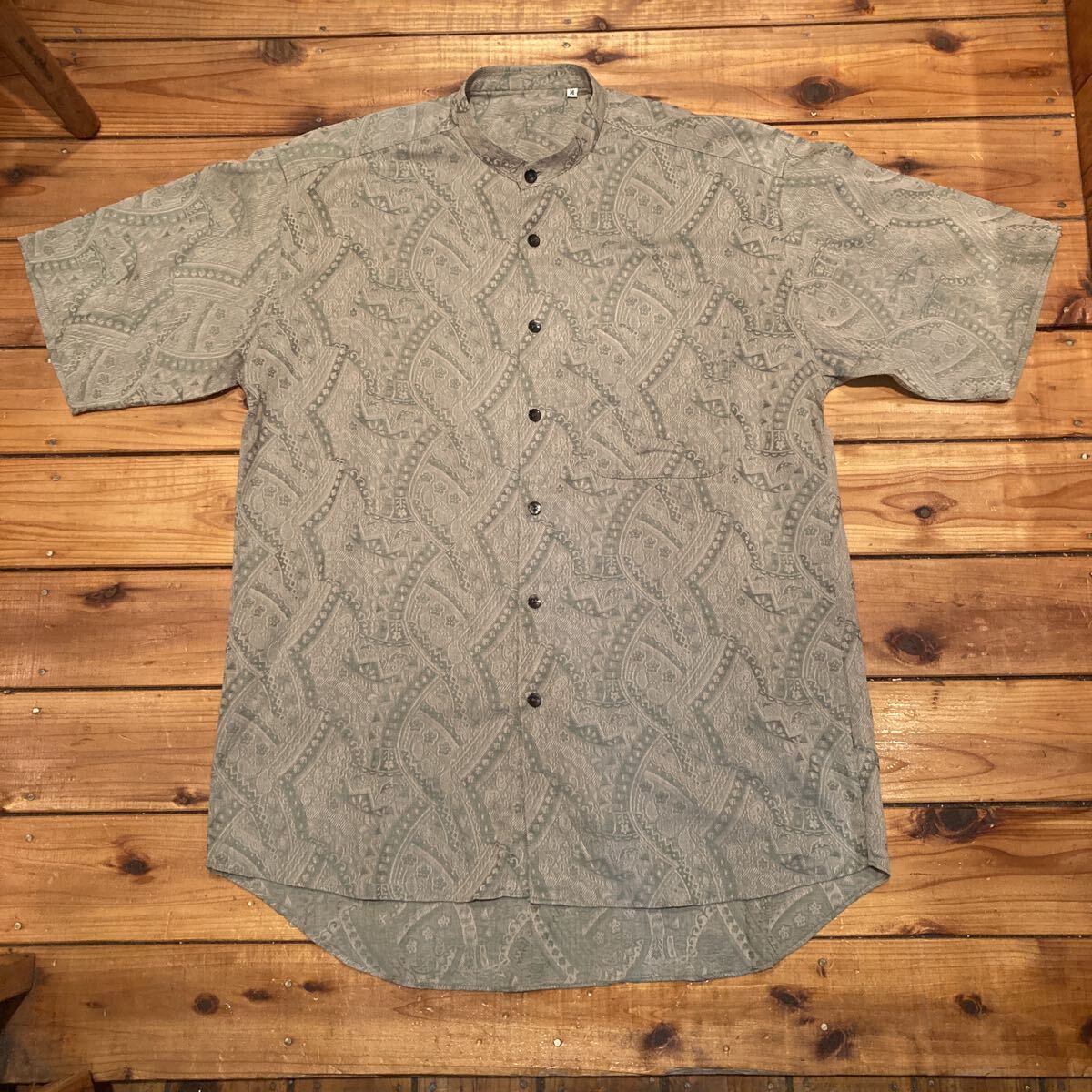 - スタンドカラーシャツ 半袖シャツ パターンシャツ 総柄シャツ 柄シャツ Mサイズ 古着