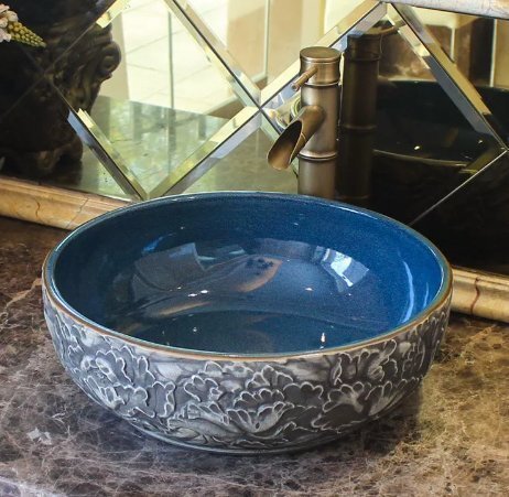 - 陶器台上盆単盆復古円形手洗い器洗面所洗面器芸術洗面器家庭用