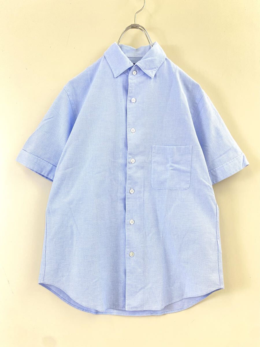 > ● TOMORROWLAND ボタンダウン 半袖シャツ ブルー Sサイズ (イタリア生地使用) ◆ クールビズ オフィス トゥモローランド ◆W21 Gや0BI-12