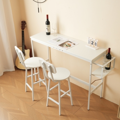 > 【ホワイト】新発売 カウンターテーブル スツール 3点セット ハイテーブル 木製 カウンター 木製 モダン 北欧 シンプル 省スペース