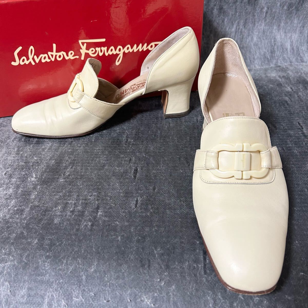 - Salvatore Ferragamo サルバトーレ・フェラガモ パンプス ガンチーニ レザー 61/2C 24cm相当 アイボリー *AV