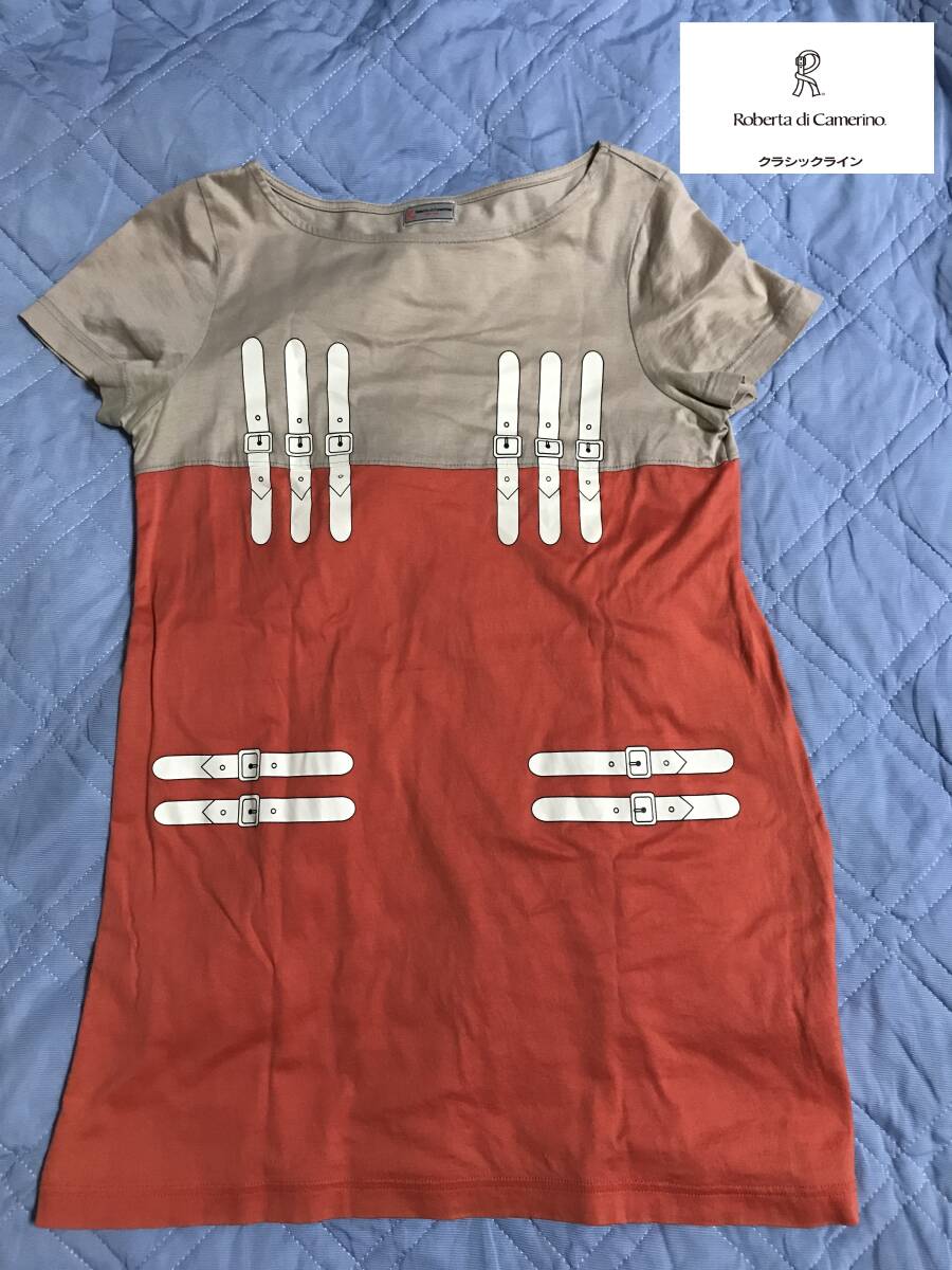 - ロベルタ・デ・カメリーノ ベージュオレンジ切替半袖チュニックカットソー 9 t251