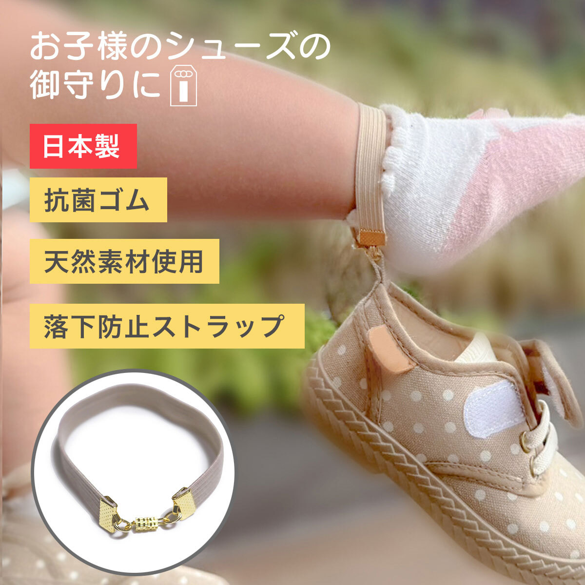 - シューズストラップ ファーストシューズ 落下防止 シューズキーパー ホルダー ベビーカー 抗菌ゴム 天然素材 ギフト ベビー 2個