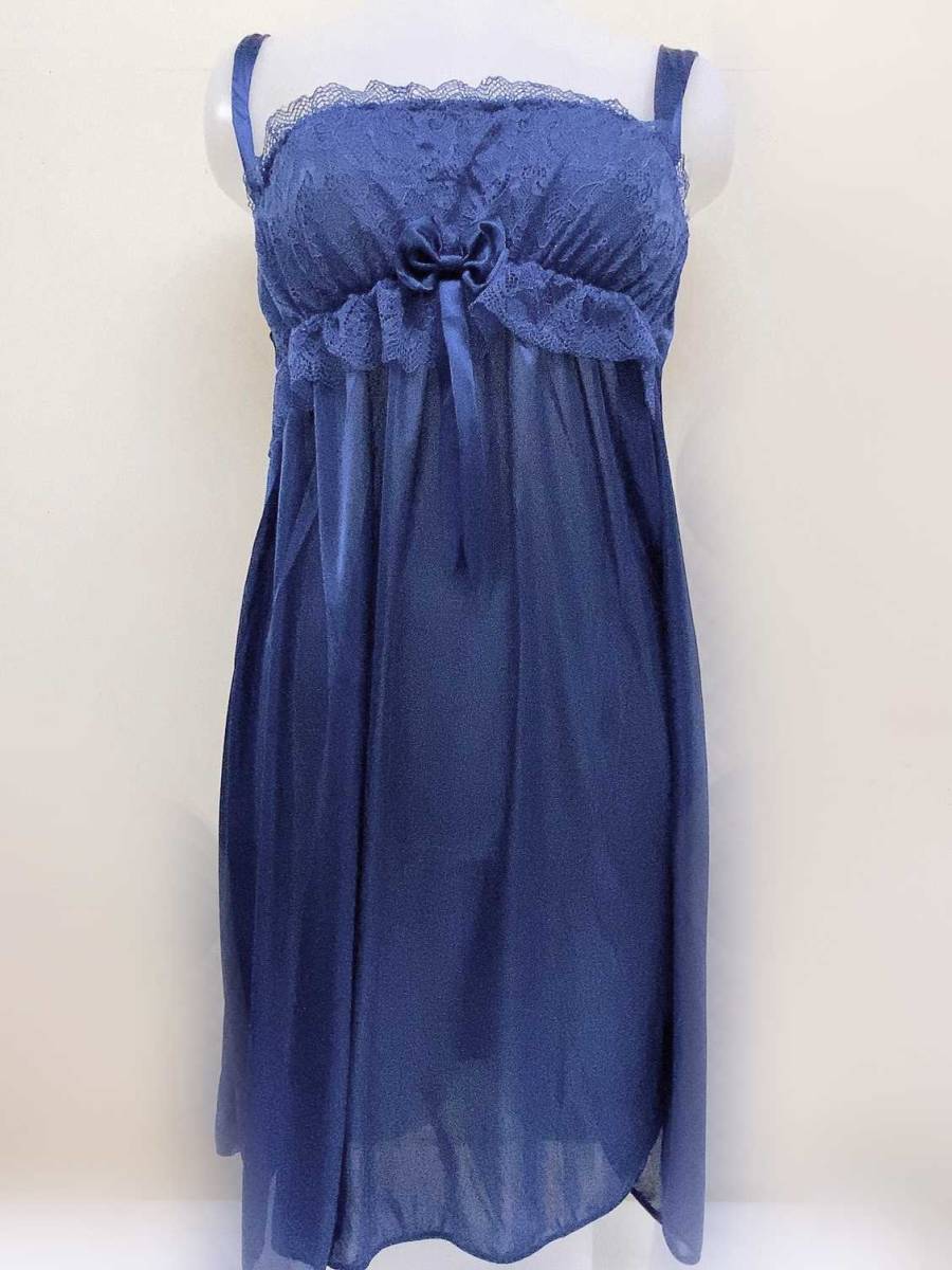 > ブルー レディース パジャマ キャミソール ワンピース 着丈約93cm アクリル 青 ルームウェア リボン レースナイトウェア ネグリジェ 部屋着