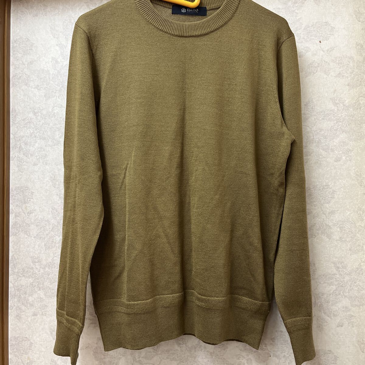 > ★NANO universe★ナノユニバース 長袖セーター S ベージュ アクリル70%毛30% 丸首 ニット 薄手 あったか