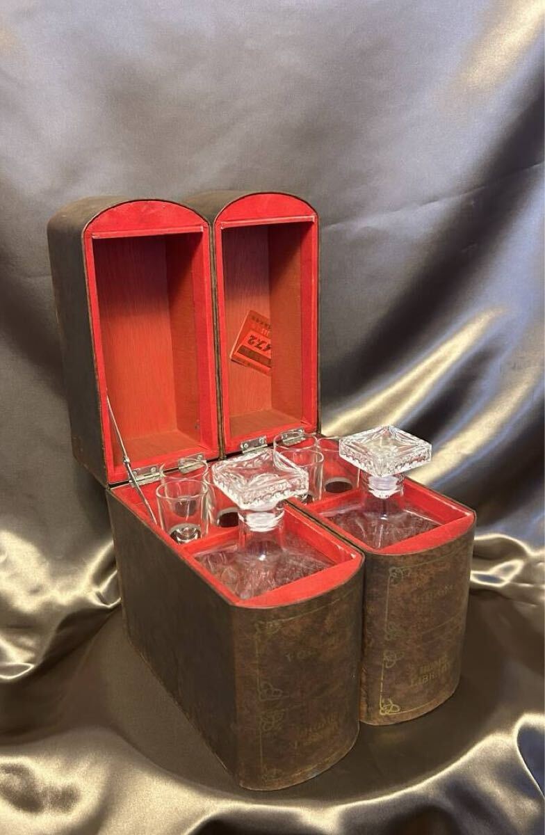 - 【洋書型ボトルケース】 デキャンタ ボトル ショットグラス付 書斎のインテリアに!昭和レトロ アンティーク