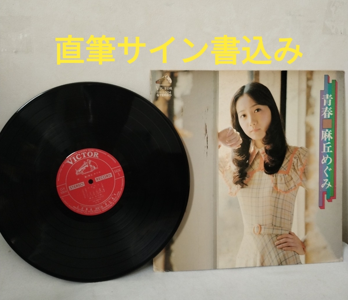 - 麻丘めぐみ 直筆サイン LPレコード MEGUMI ASAOKA / 青春 SEISHUN 昭和レトロ アンティーク