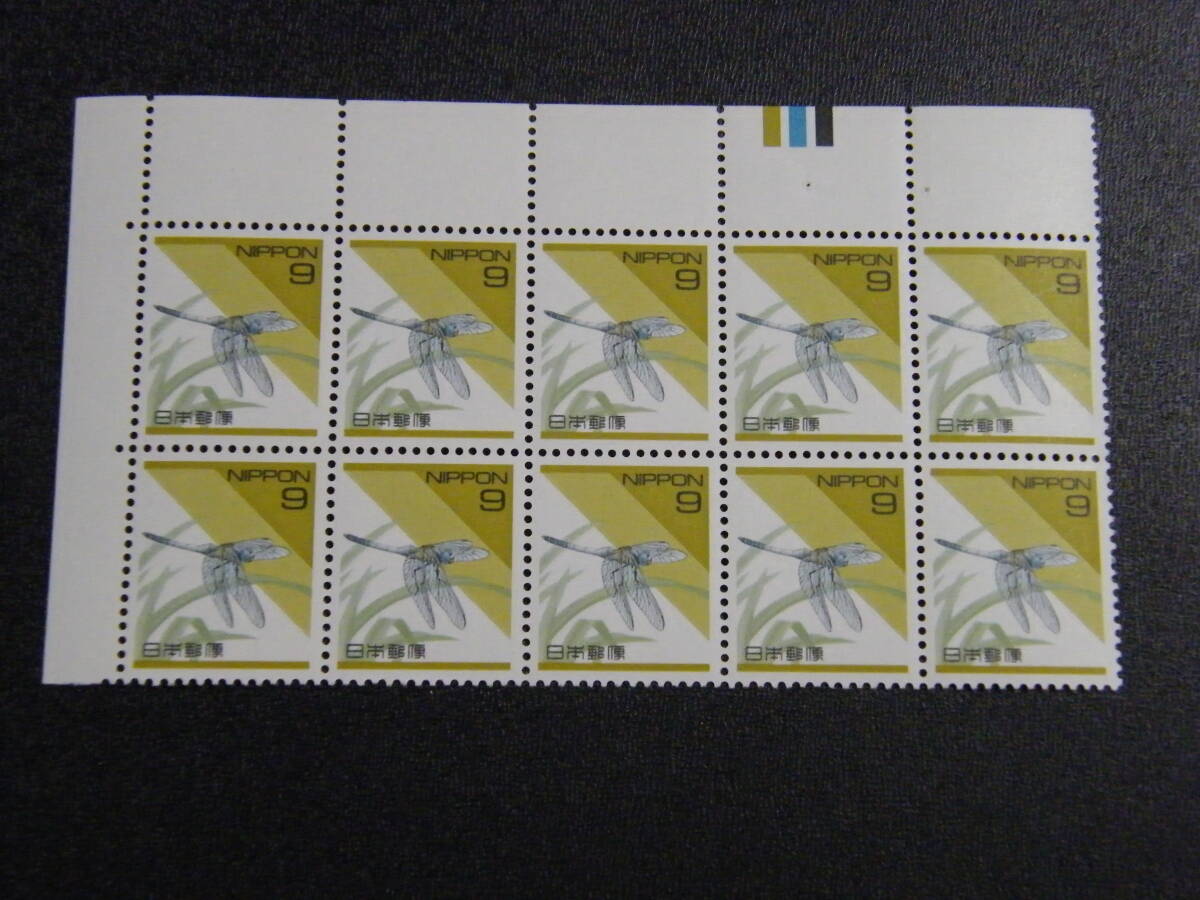- シオカラトンボ 9円 カラーマーク上 10枚ブロック 未使用 1994年シリーズ(CM付)