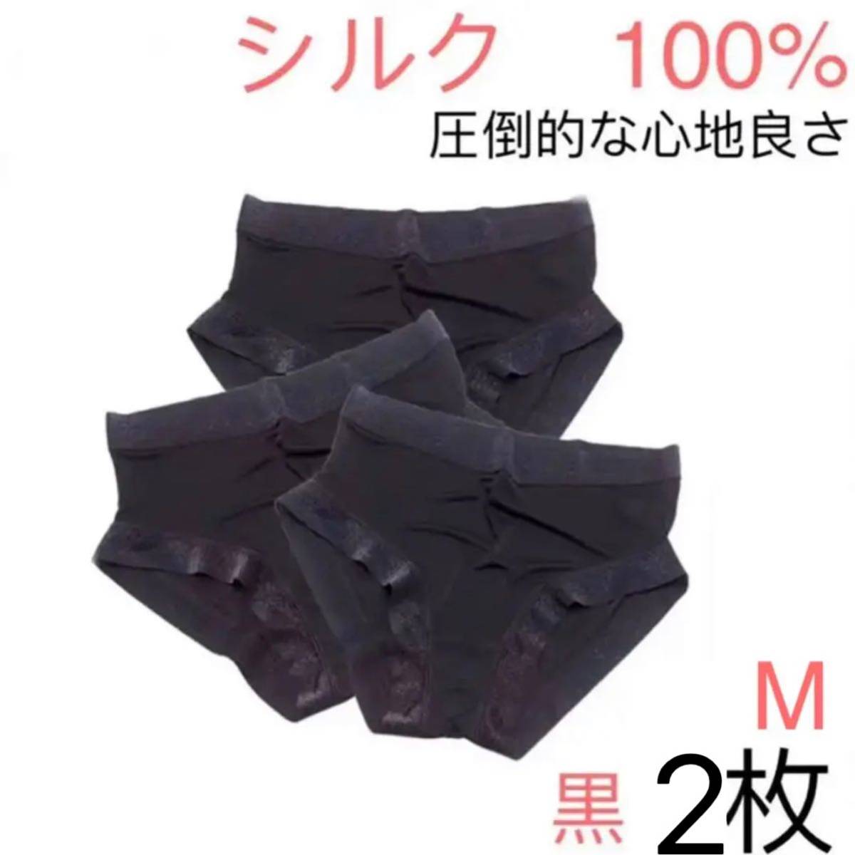 - シルク絹100% 美肌 ショーツ シンプル 下着 インナー パンティ M黒2枚
