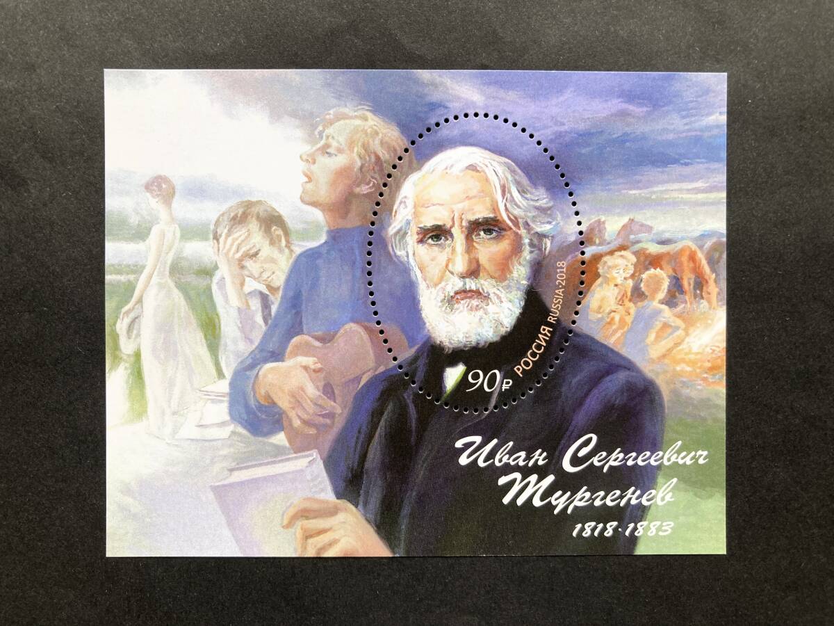 - 外国切手: ロシア切手 「(作家)イワン・ツルゲーネフ 誕生200年」 小型シート 未使用