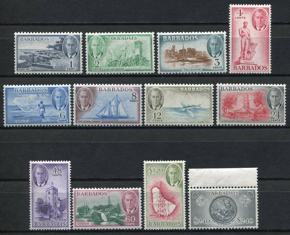 - 英領ロングセット バルバドス SC:216-227 1950年 ジョージ6世 12種完 未使用 z9445