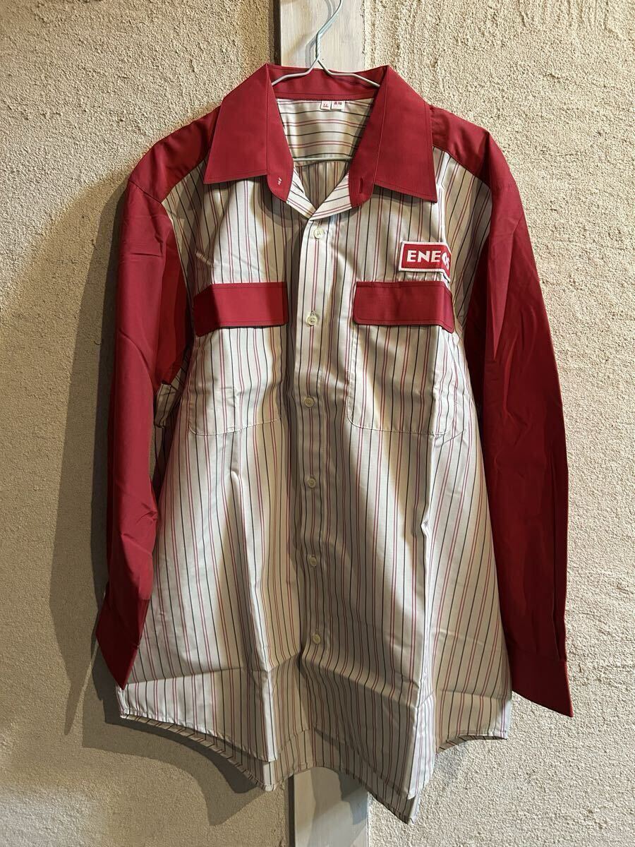 > 非売品・試着のみ エネオス GS ワークシャツ ホワイト&レッド LL 長袖シャツ ENEOS ガソリンスタンド
