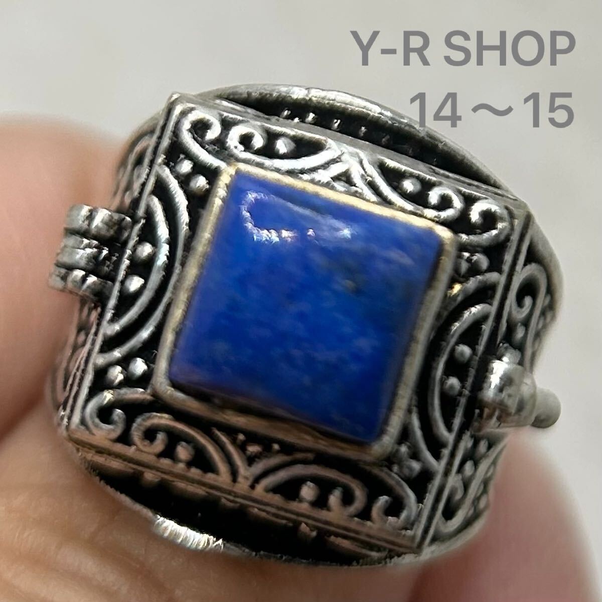 - 天然石★14号15号★ラピスラズリのアンティーク調ポイズンリング★レディース指輪シルバーカラーストーンアクセサリー新品宝石Y-RSHOP卸売