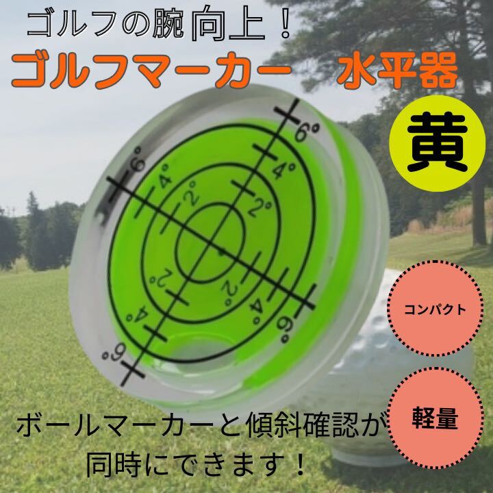 - ボール マーカー 目盛り付き 水平器 角度 方向 黄 ゴルフ パッティング ゴルフマーカー ボールマーカー パター練習 軽量 コンパクト 初心者