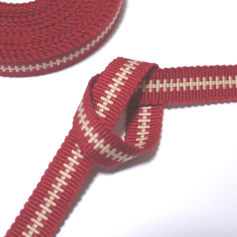 > (04-33-05)限定柄 国内産 木綿 真田紐 綿100% 四分紐 四分巾 赤×ベージュ 5m Samurai ribbon(Sanadahimo)