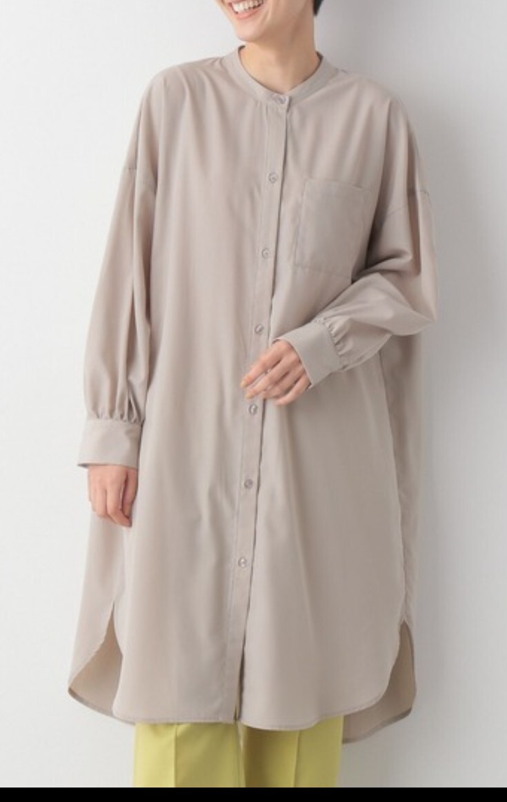 - レプシィム ノーカラー膝丈ワンピース チュニック ベージュ バンドカラー ノーカラーシャツ 長袖