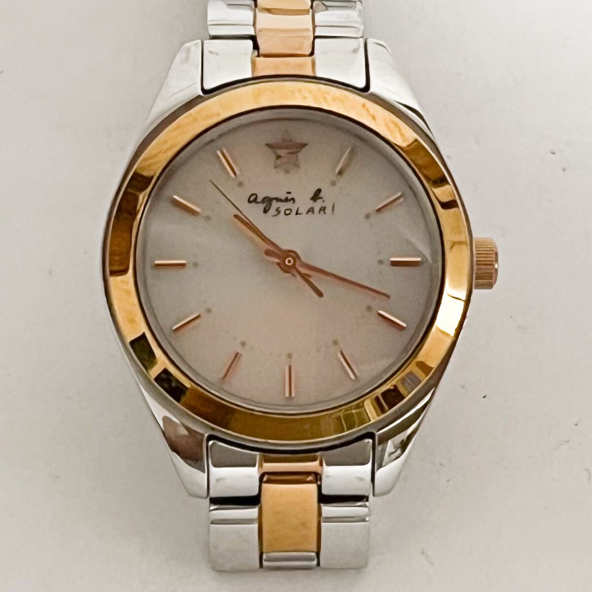 > 和822★ agnes b. SOLAR! V117-0AH0 292298 アニエスベー ソーラー 3針 腕時計 ウォッチ ピンクゴールド メタルバンド レディース