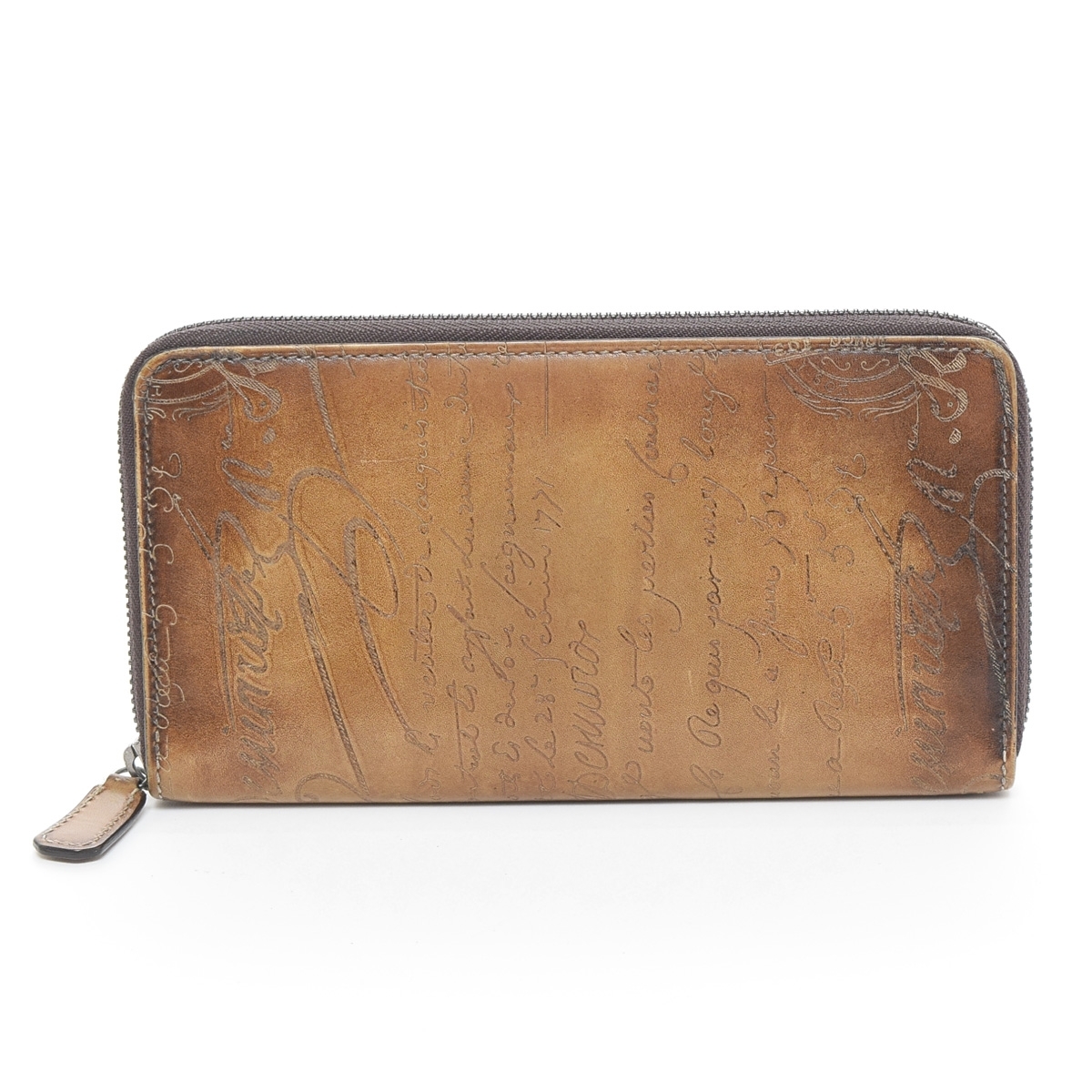 > ●462445 Berluti ベルルッティ 長財布 イタウバ スクリットレザー ラウンドファスナーロングウォレット メンズ ブラウン