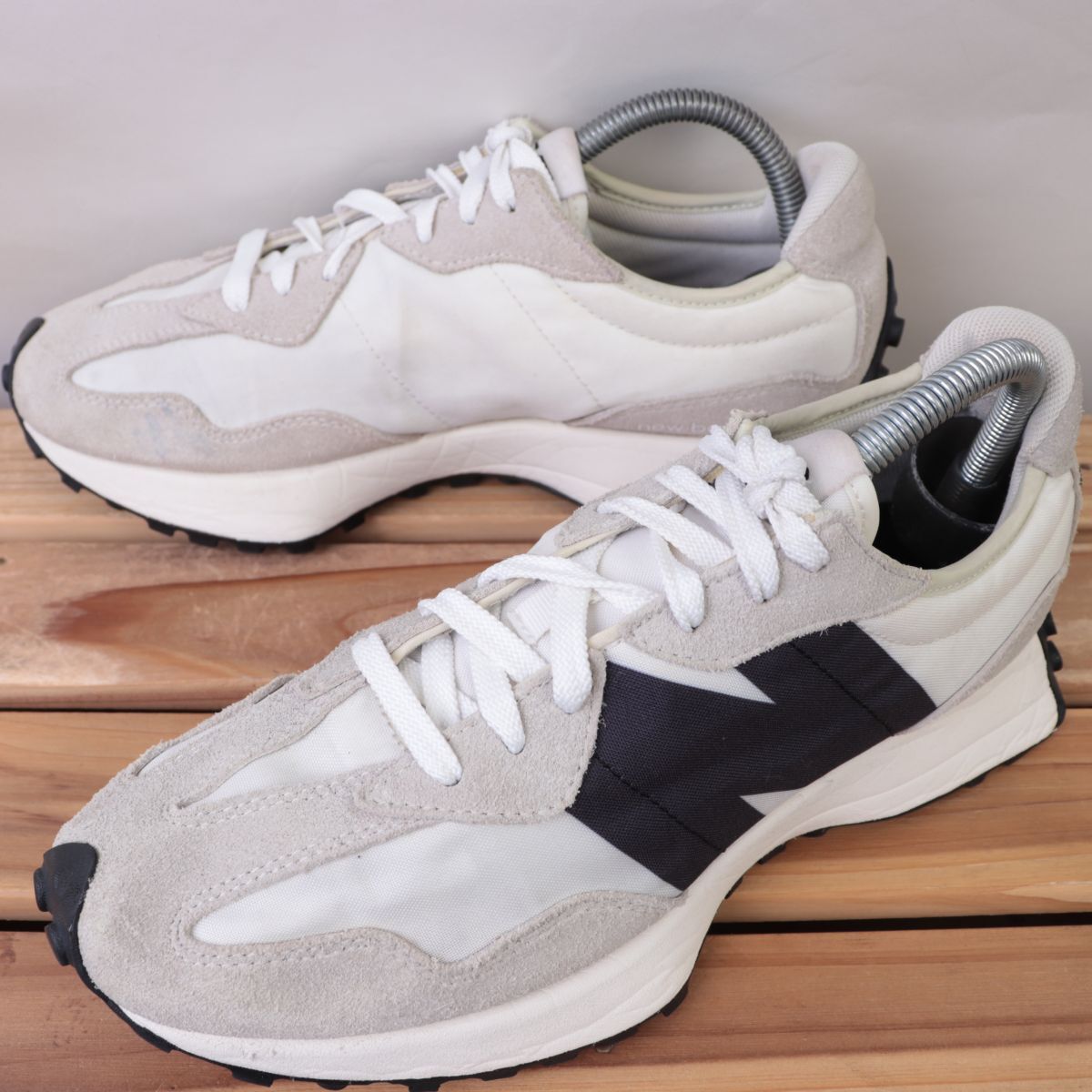 > z1107【MS327FE】ニューバランス US7 25.0cm/白 ホワイト 黒 グレー newbalance メンズ ユニセック スニーカー 中古