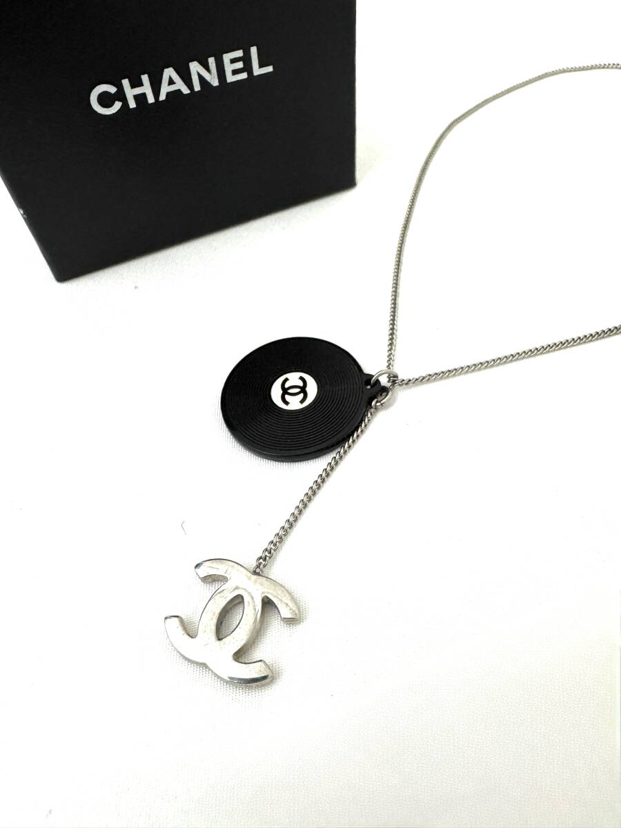 - 7H1716【本物保証】シャネル ネックレス レコード モチーフ ブラック ホワイト ココマーク シルバー チェーン 04P CHANEL