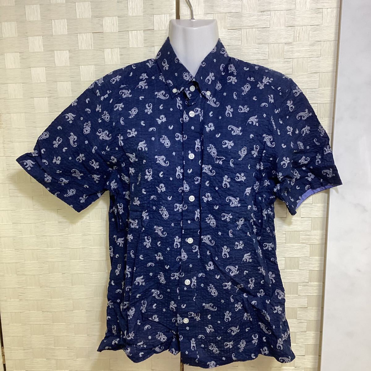 - Golden Bear ゴールデンベアー メンズ 半袖 シャツ ペイズリー柄 紺系 Mサイズ N90
