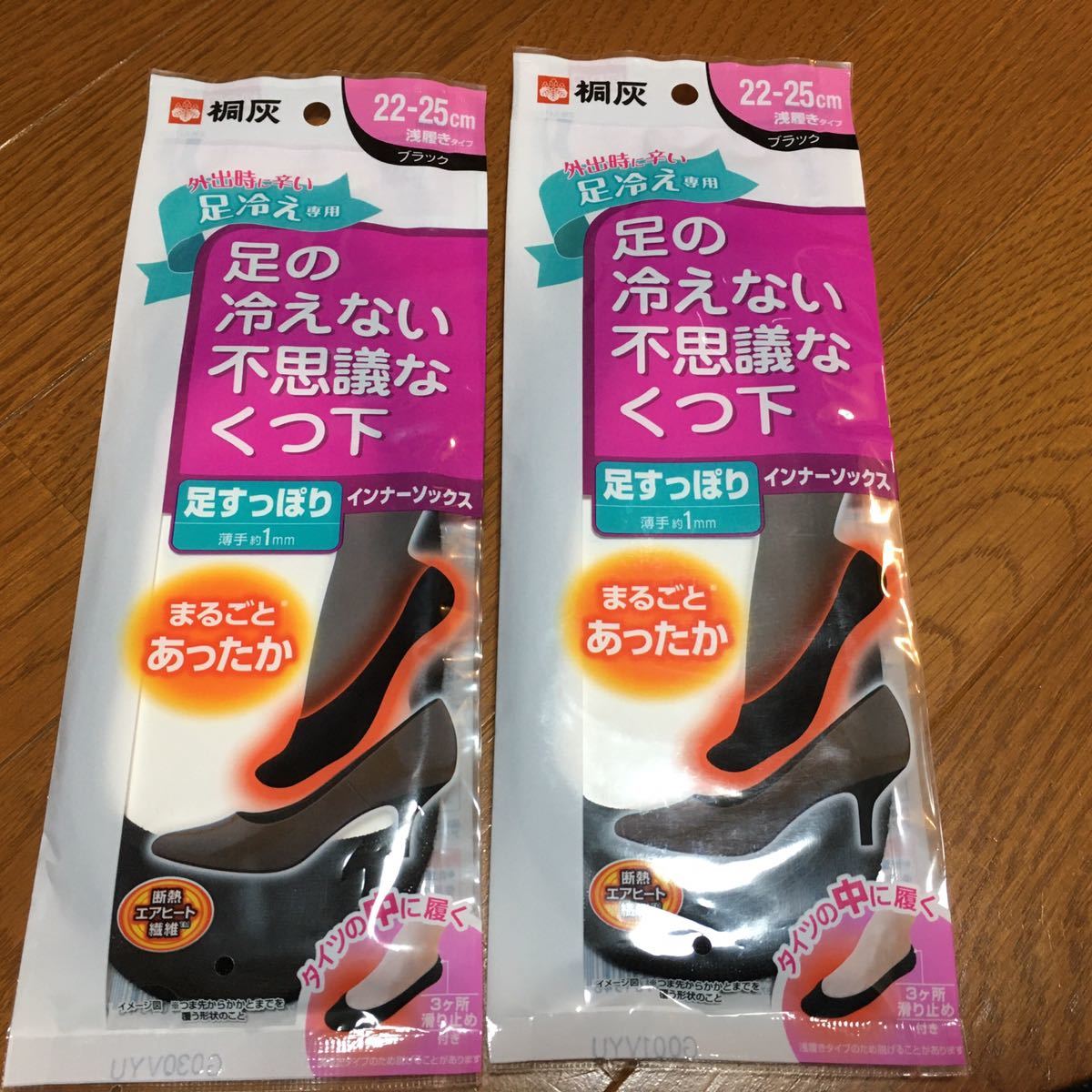 - 送料無料☆ 新品 桐灰 足の冷えない不思議なくつ下 インナーソックス ブラック黒 2足セット 23〜25cm 靴下 遮断エアヒート繊維 冷え症