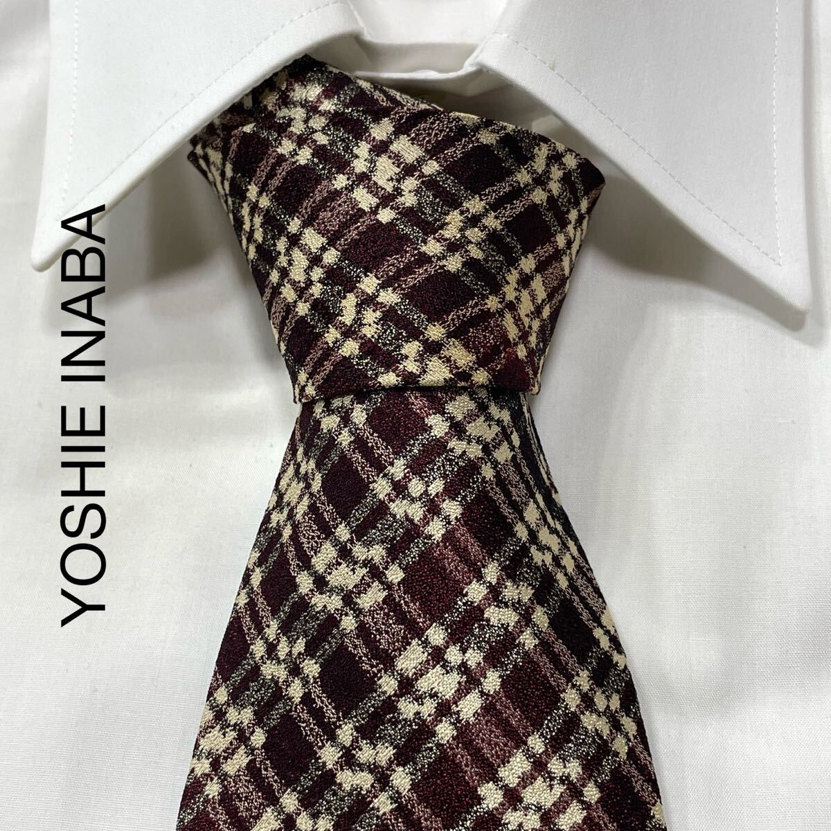 - YOSHIE INABA ヨシエイナバ チェック ジャガード シルク ネクタイ ワイン ベージュ ブラック TG2770
