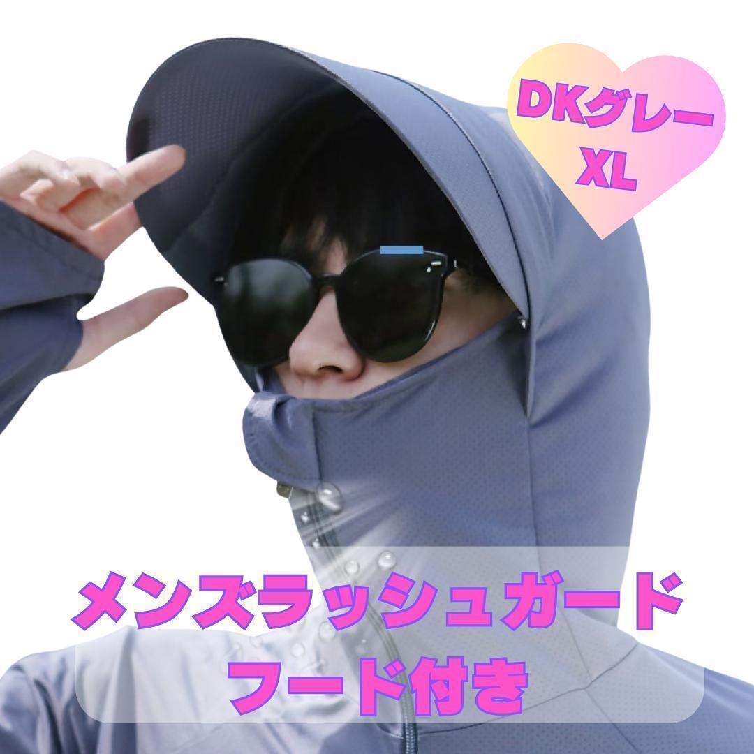 - UVパーカー ラッシュガード 長袖 紫外線 フード ダークグレー XL フード