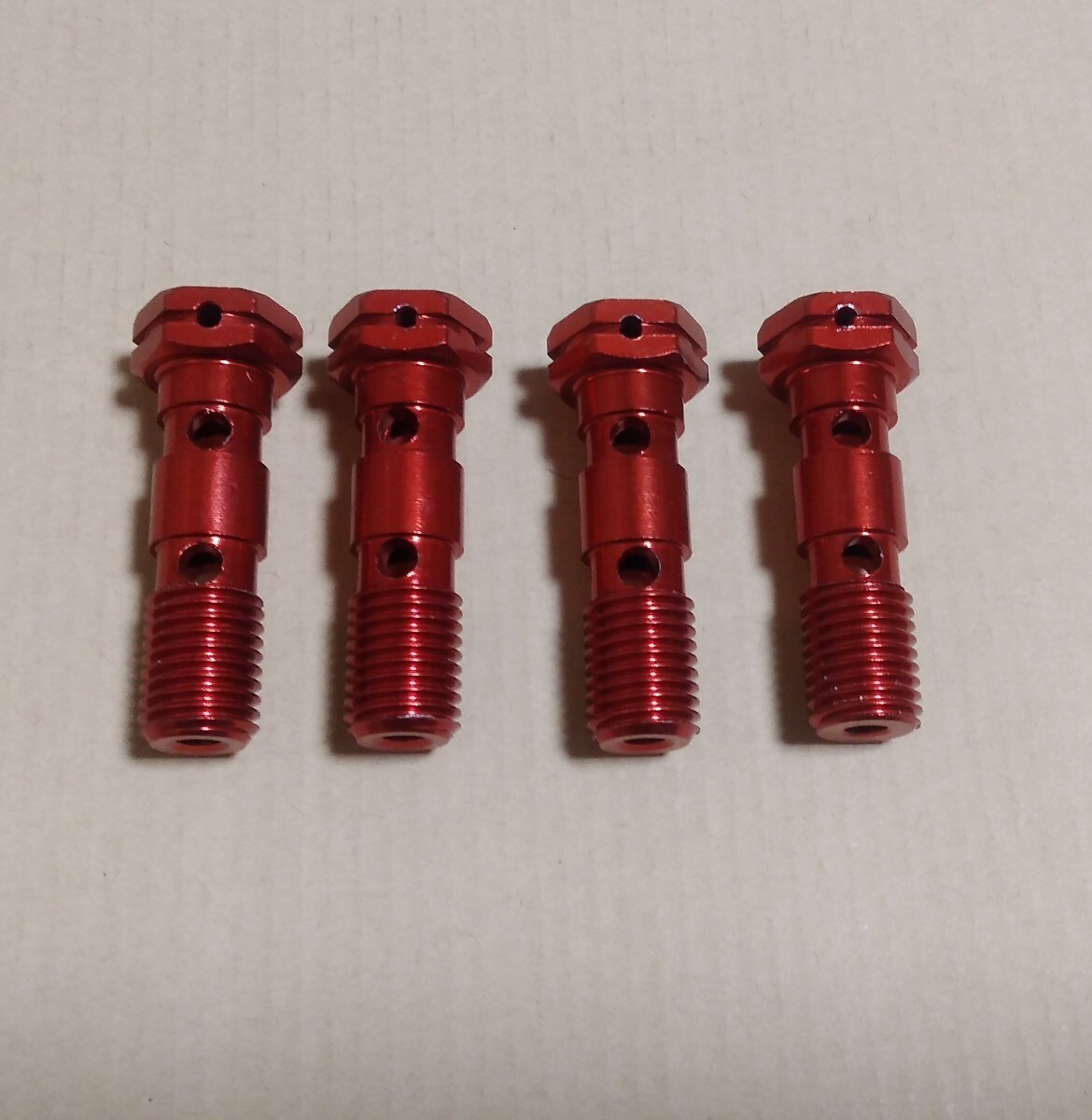 > ☆ 激安新品!アルミバンジョーボルト(ダブルタイプ)M10×P1.25 レッドアルマイト 4本セット 送料無料(定形外郵便にての発送)