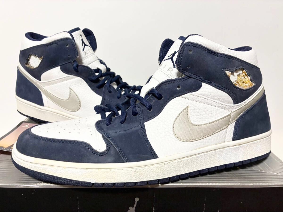 > 訳あり 2001 新品箱付 NIKE AIR JORDAN 1 RETRO WHITE SILVER NAVY ナイキ エア ジョーダン ホワイト シルバー ネイビー 31cm 136065-101