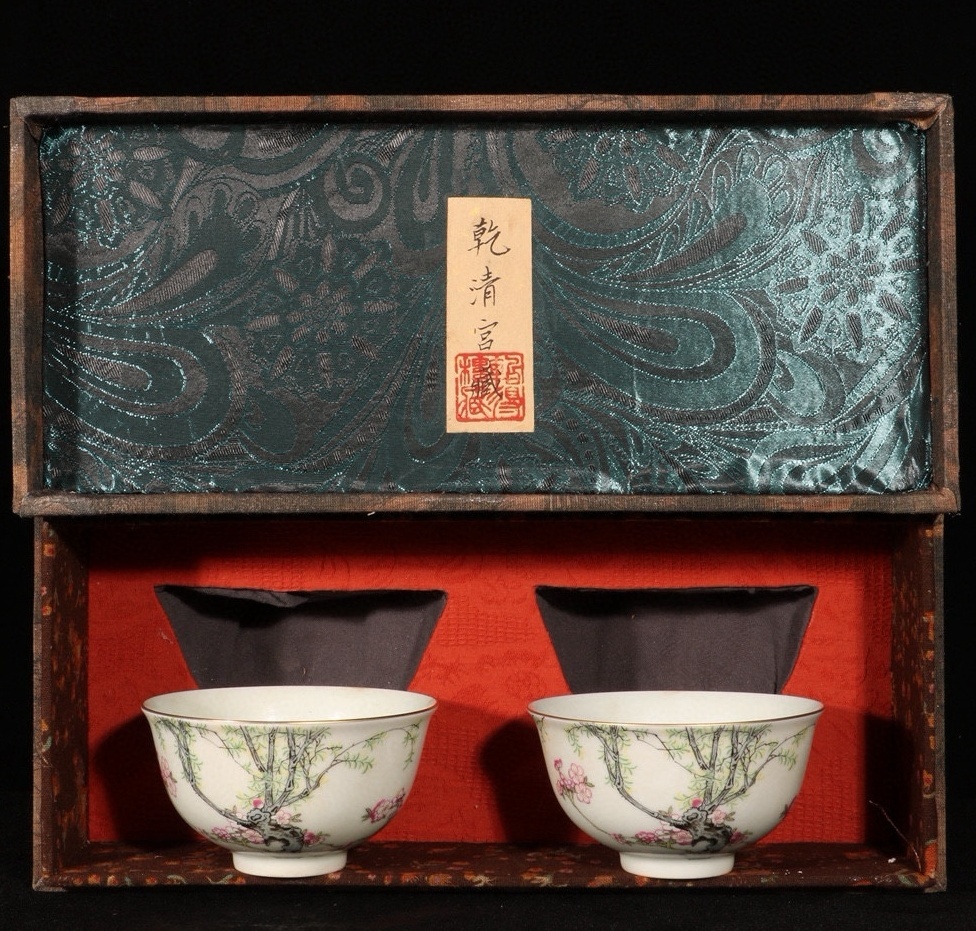 > 珍しい 唐物 中国 清時代 乾隆年製 粉彩杏林春燕碗 共箱付き 古染付 中国美術 骨董 古美術 819