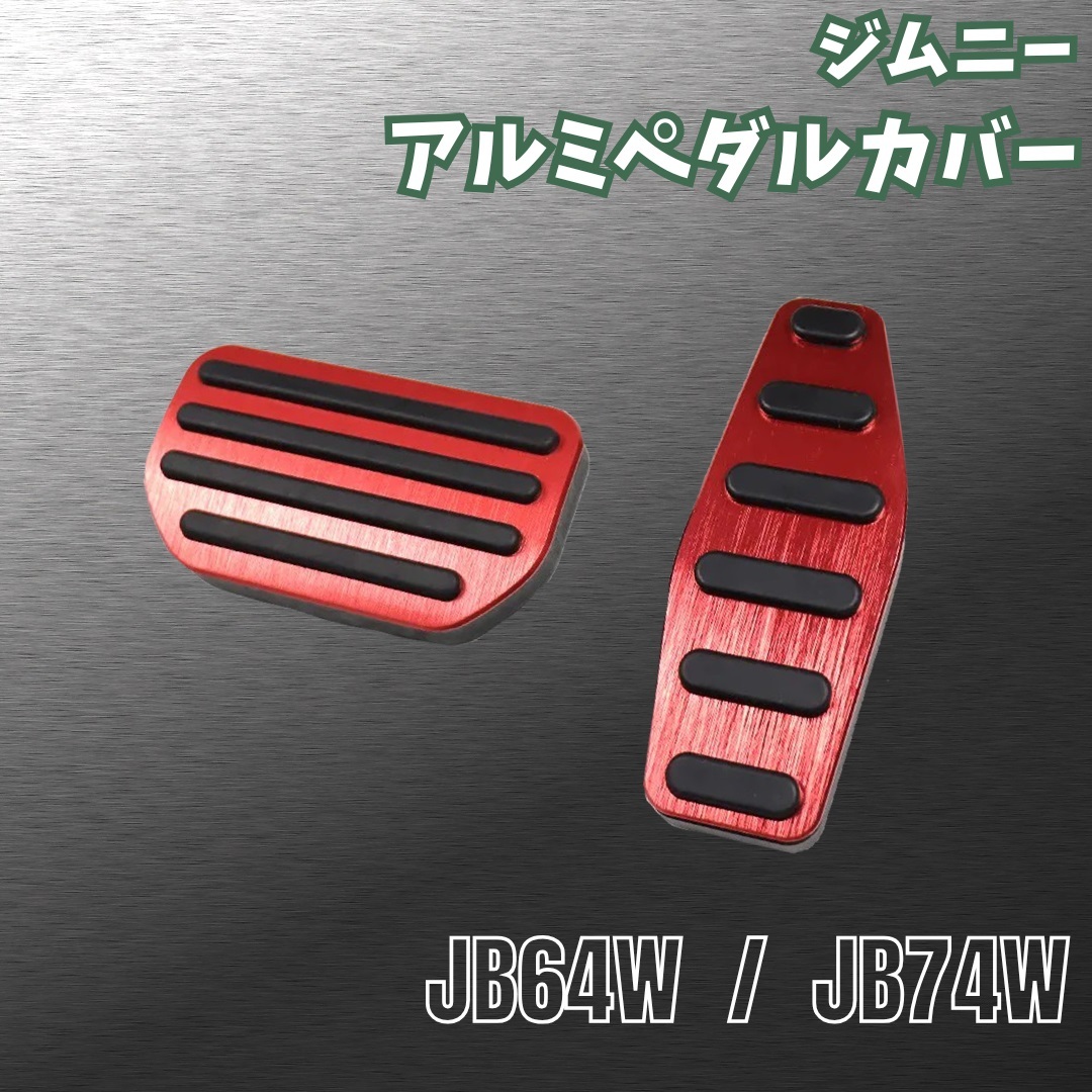 - 【スズキ ジムニー】ペダルカバー / アルミ レッド AT車 / SUZUKI ジムニーシエラ JB64W JB74W 対応 / ラバー 滑り止め アクセル ブレーキ