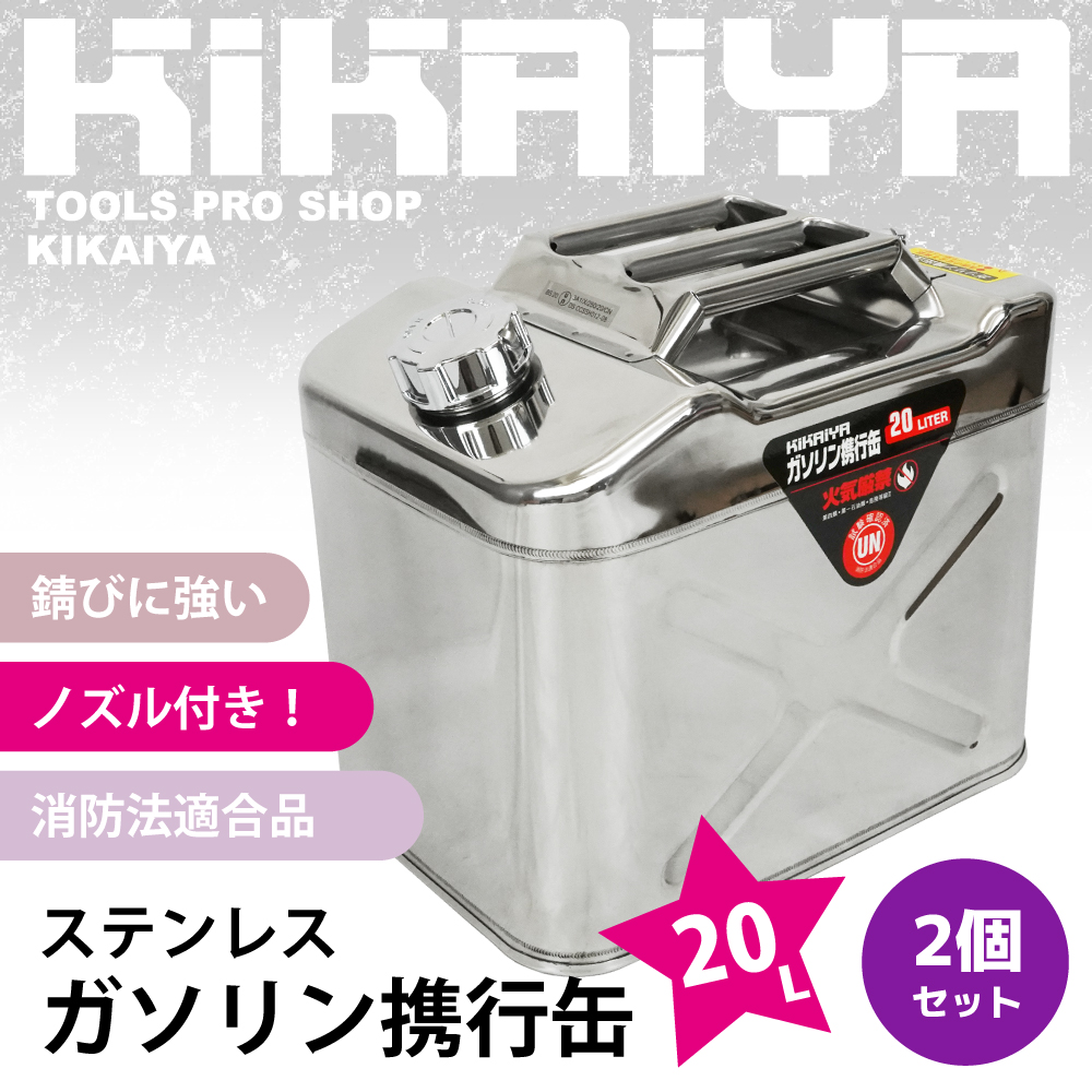 > ガソリン携行缶 20L ステンレス 2個セット SUS304 横型 高級 ガソリンタンク ジェリカン 消防法適合品 KIKAIYA
