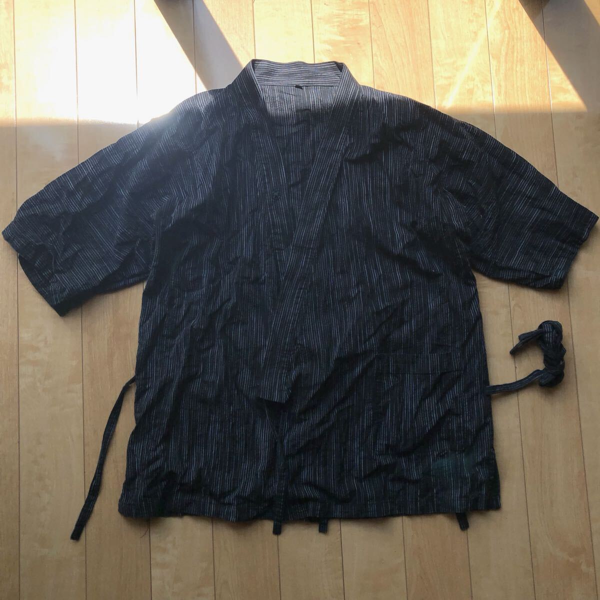 - 無印良品 甚平 234-1-42 メンズ M ブラック ストライプ