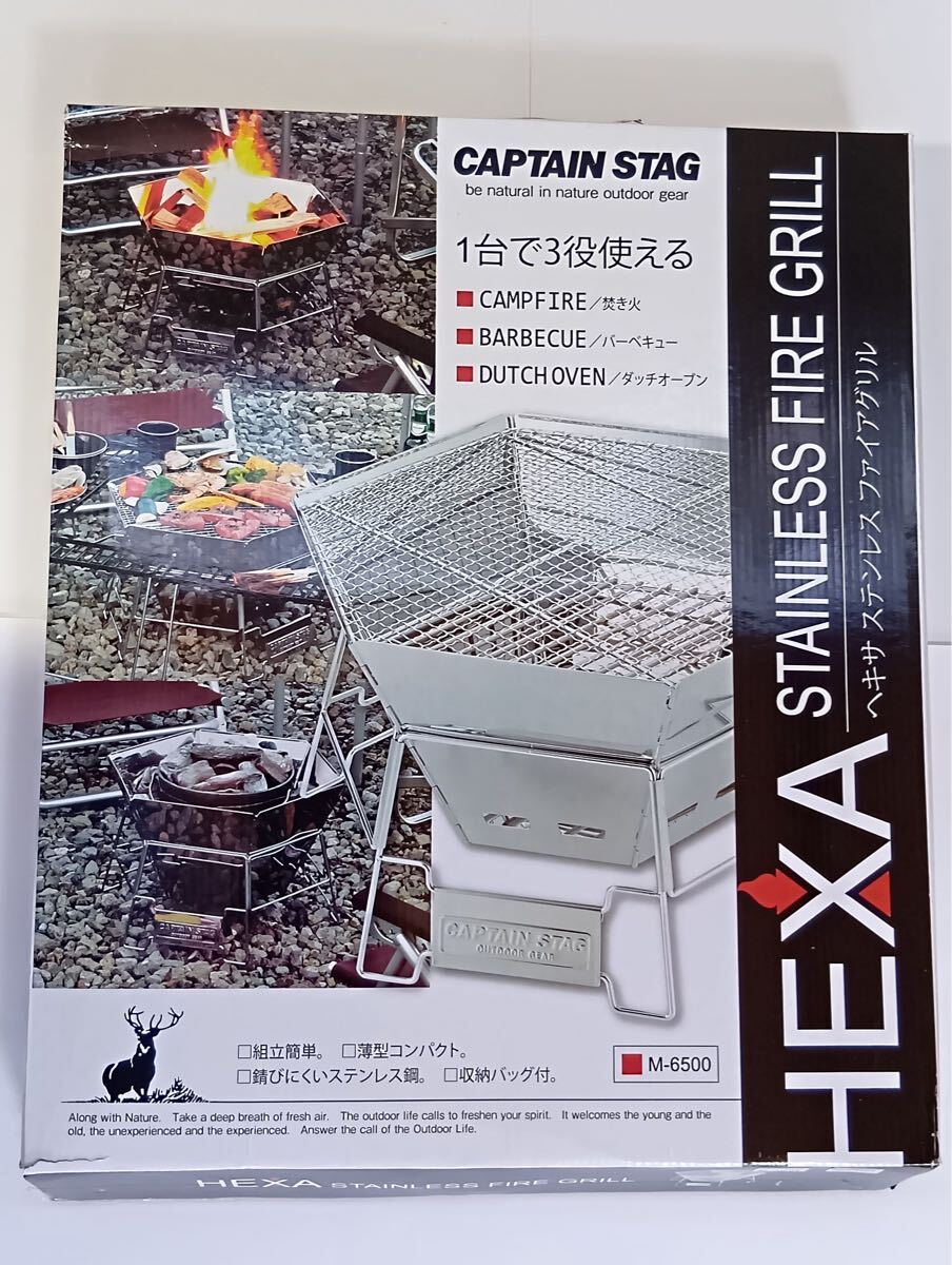 - 【CS0221】キャプテンスタッグ ヘキサステンレスグリル M-6500 未使用品 箱凹み有り キャンプグッズ