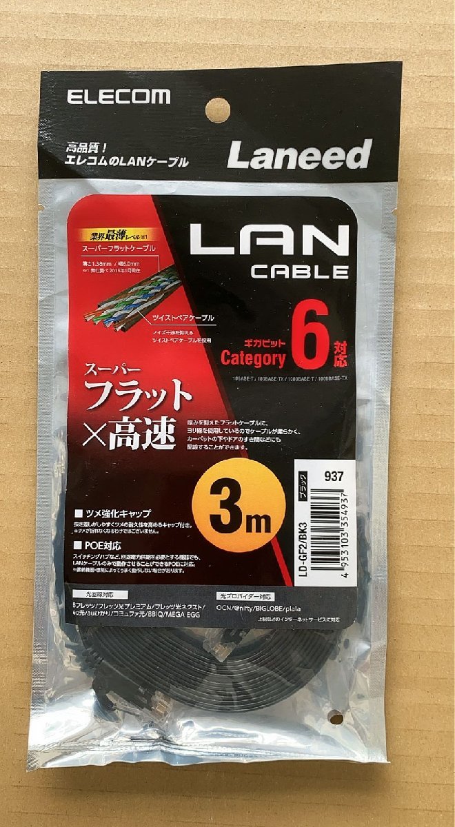 - 送料無料★未使用 エレコム ELECOM Laneed LD-GF2/BK3 3m スーパーフラット 高速 LANケーブル★GT30